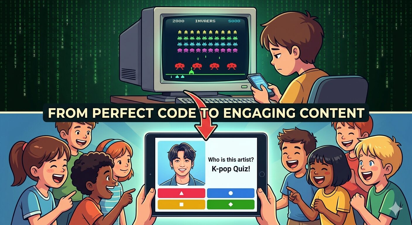 완벽했던 게임, 그리고 완벽한 실패 방학을 맞은 아이들에게 코딩의 세계를 경험하게 해주고 싶었다. 첫 번째 시도는 AI(lingguang)의 도움을 받아 만든 ‘스페이스 인베이더’ 게임이었다. VS Code를 처음 설치하고, AI가 제안한 코드를 로컬에서 실행했을 때 화면 위로 우주선이 움직였다. 기술적으로는 완벽한 성공이었다. 하지만 정작 사용자인 아이들의 반응을 보자, 나의 모든 가정은 산산조각 났다. “이게 뭐하는 거예요?” 게임은 … 더 읽기